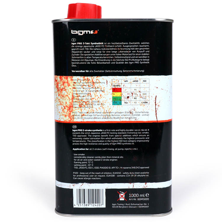 bgm PRO Oldie Edition (Vintage 1 Litre Can) 2-stroke synthetic oil is a high quality 2-stroke oil.