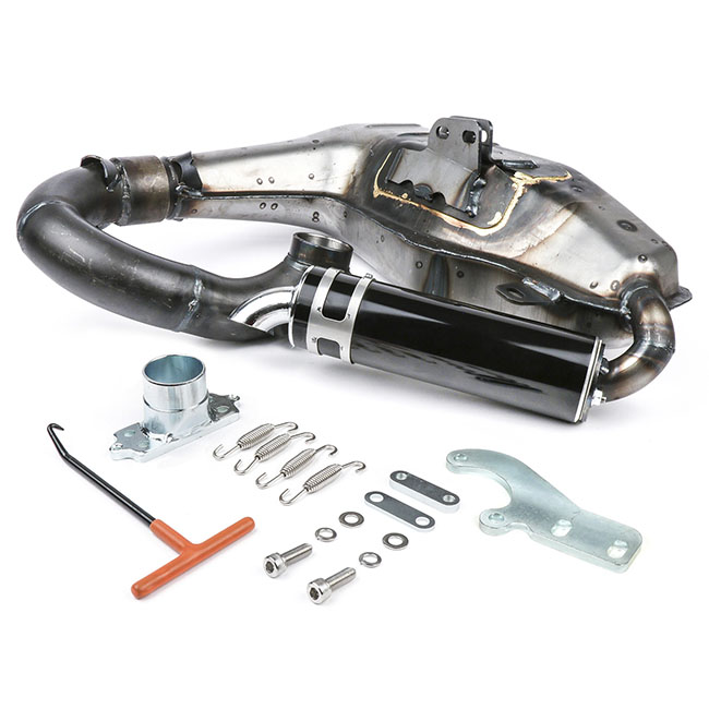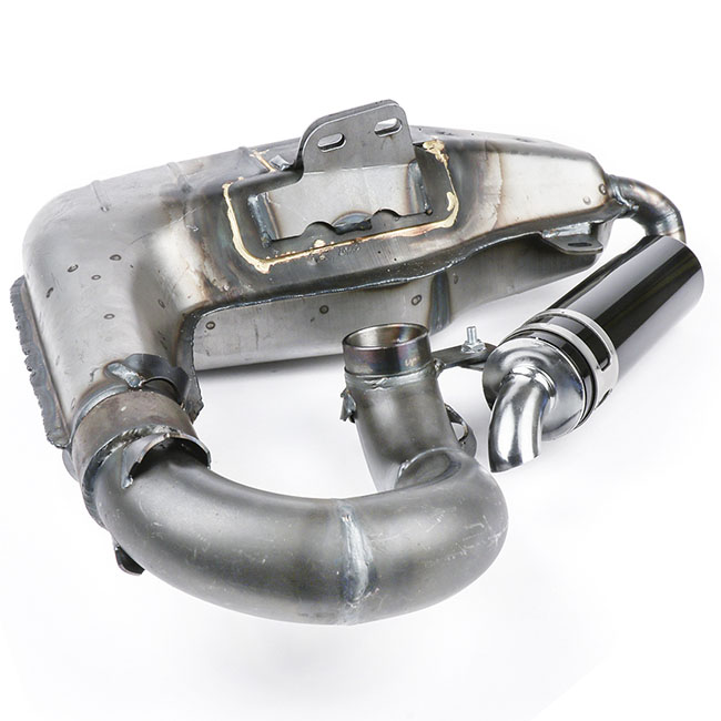 The BGM Pro Big Box Sport exhaust is based on the Big Box V4…it brings more power over the complete band on all comparison engines. This makes the Big Box Sport the most powerful Big Box system ever made by bgm. The increase in performance was achieved by redesigning the internal damper chamber. This has made it necessary to install a hidden silencer under the engine.