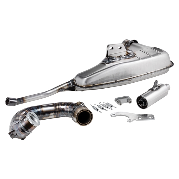 Standard looking road-tuned exhaust, complete with end can. Finished in clear-coated steel.