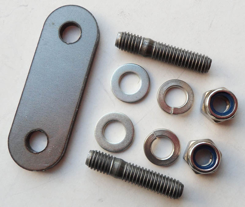 Spreads the load on the upper chain tensioner. Plate with studs, lock nuts and washers.
