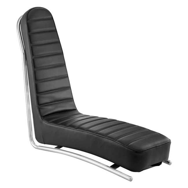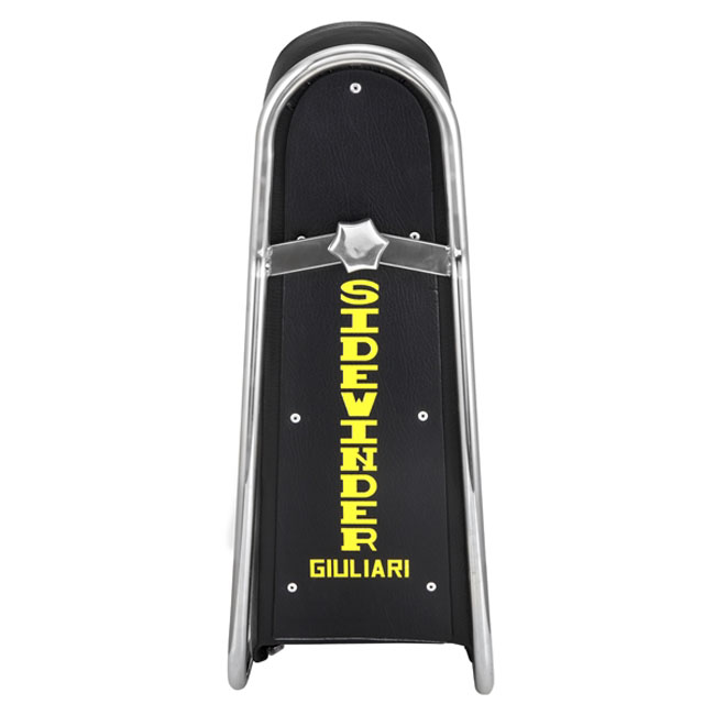 Remake of the 70’s skelly style Sidewinder seat, in black with yellow lettering. Comes with rack/frame shown.