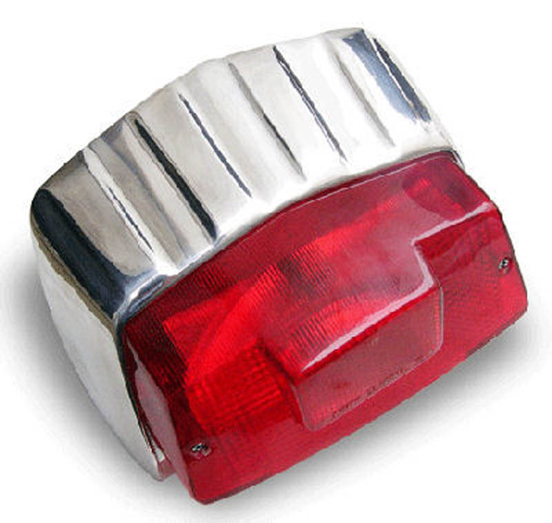 Polished alloy rear light unit for GP, fitted with light reflector and lens.