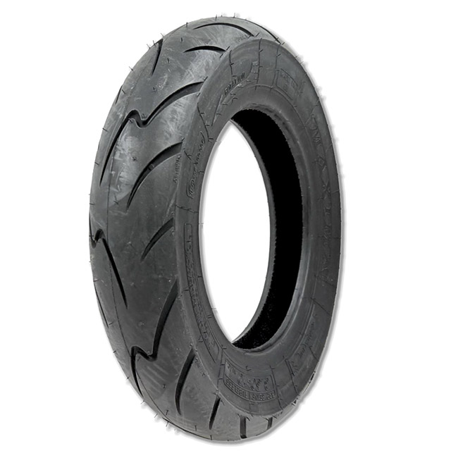 Our choice over the popular Dunlop Scootsmart tyre, both are soft compound fast road tyres with a 93mph speed rating but the Mitas has a higher weight load rating of 243kg as opposed to the Dunlop’s 195kg which makes the Maxima a better fast tourer, loaded with rally gear or whenever riding “two up”. PLUS the added bonus of being quite a bit a cheaper in the bargain.