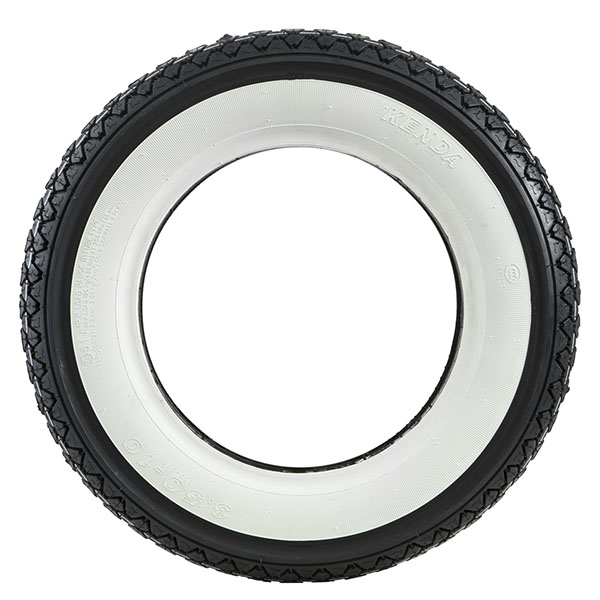 Kenda K333 Whitewall 3.50×10 tyre with a traditional tread pattern on SIP tubeless rim.