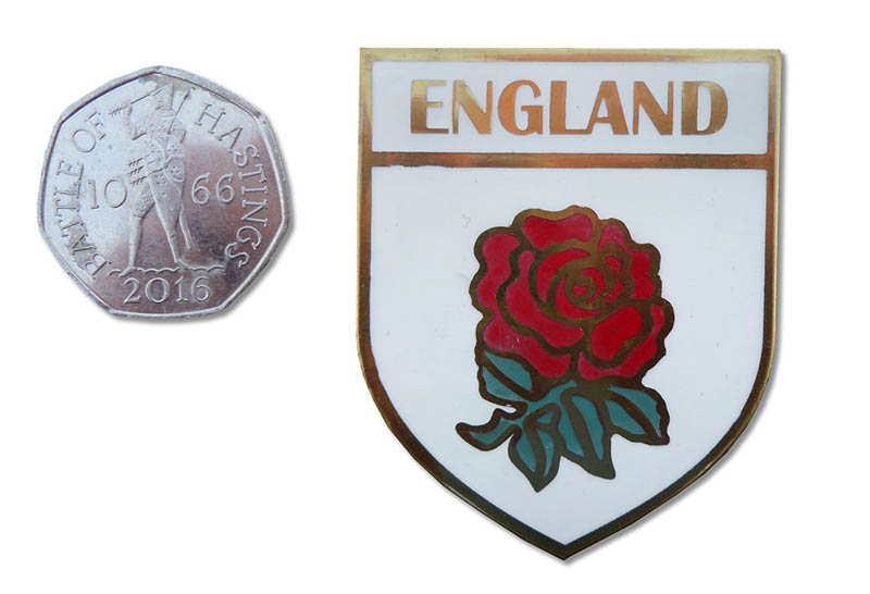 Self adhesive alloy badge. England Rose.