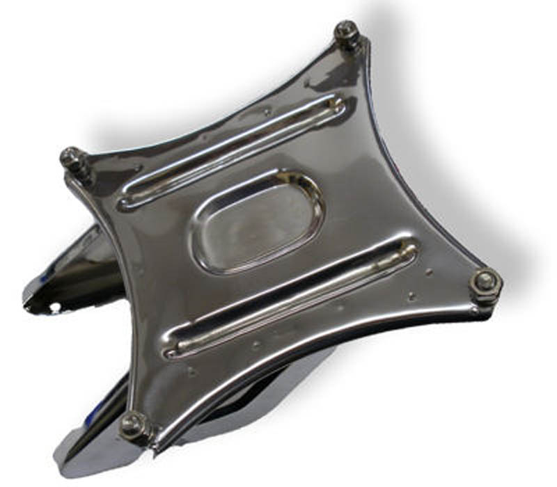 Fits rear of frame, behind seat. Stainless Steel.